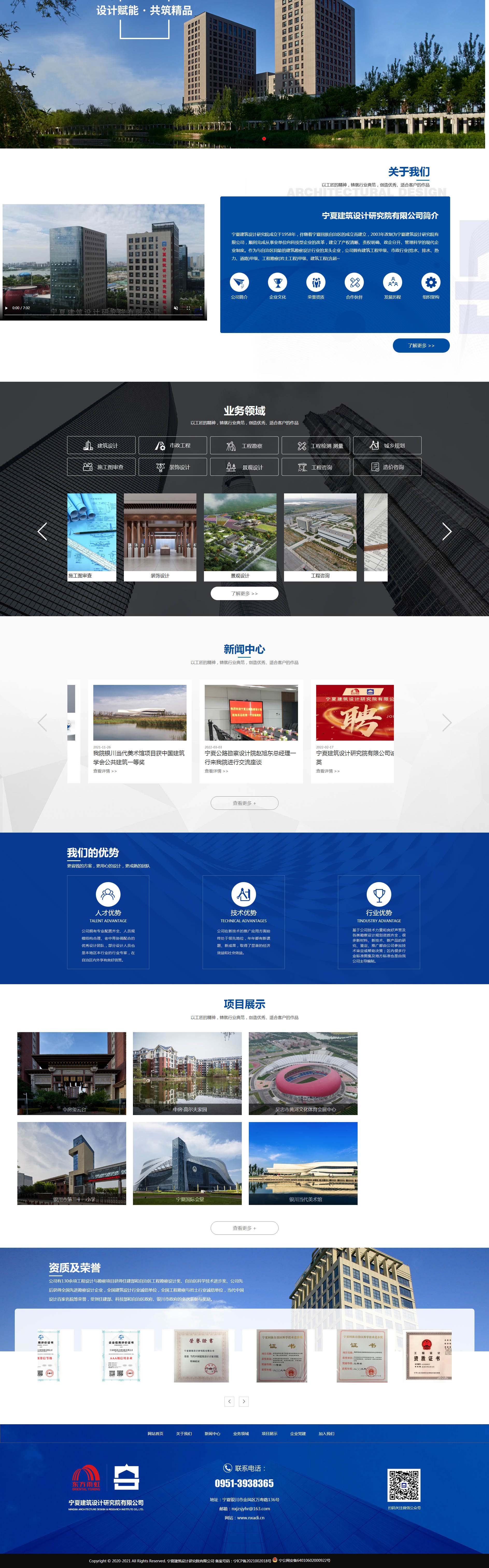 宁夏建筑设计研究院成立于1958年,伴随着宁夏回族自治区的成立而建立,2003年改制为宁夏建筑设计研究院有限公司,顺利完成从事业单位向科技型企业的改革,建立了产权清晰、责权明确、政企分开、管理科学的现代企业制度。作为与自治区同龄的建筑勘察设计行业的龙头企业,公司拥有建筑工程甲级、市政行业(给水、排水、热力、道路)甲级、工程勘察(岩土工程)甲级、建筑工程(含超限)施工图设计审查一类、市政行业(除轨道、交通)乙级、市政燃气乙级、规划乙级及测量乙级、工程造价咨询乙级、特种设备压力管道设计许可等资质。