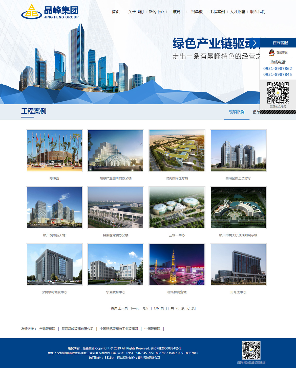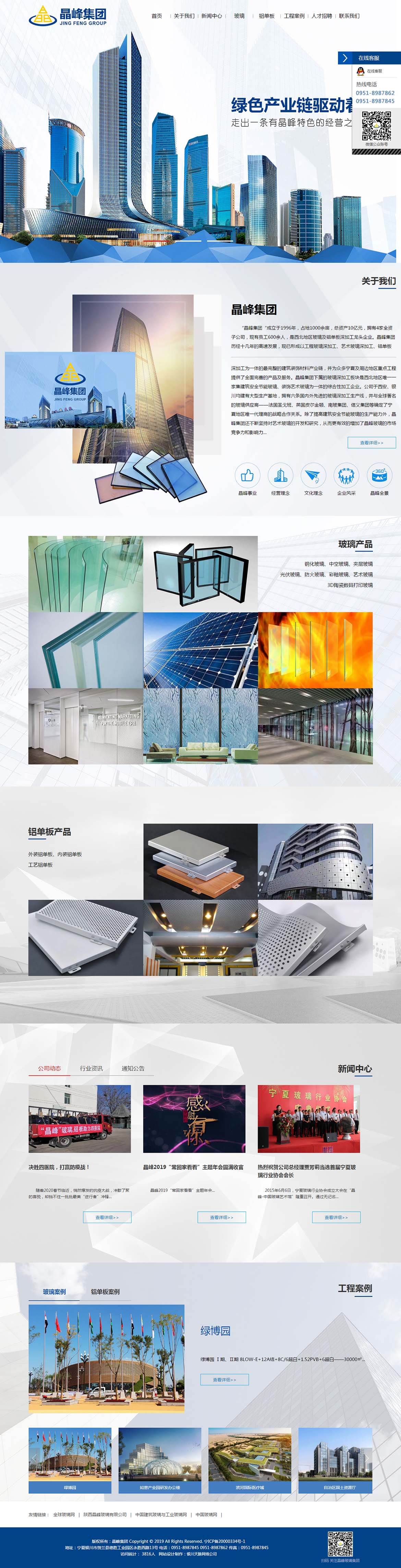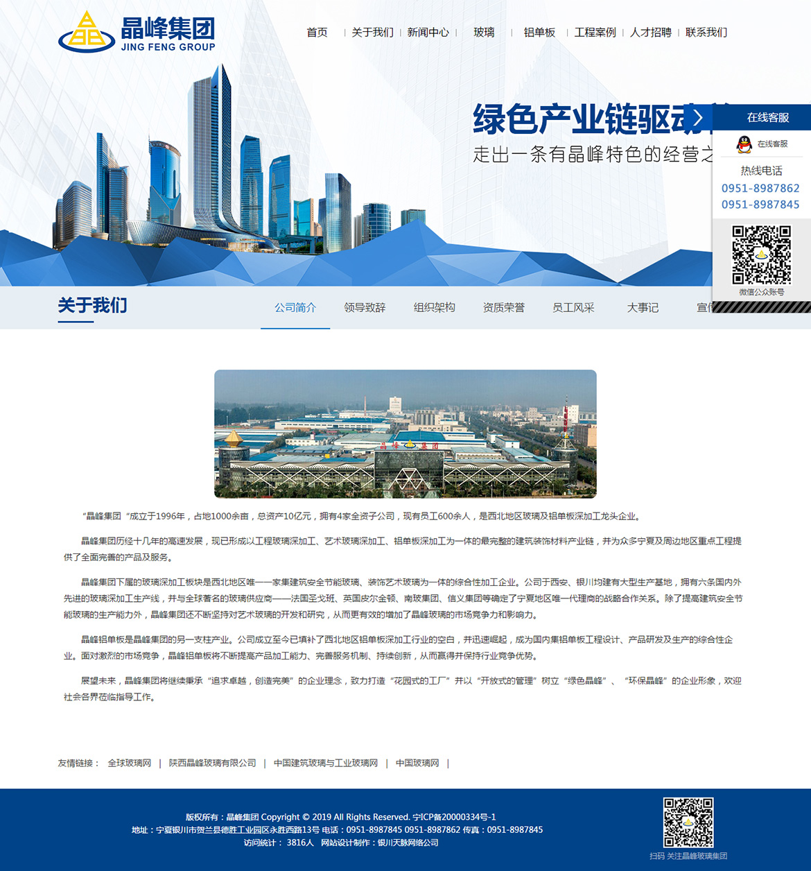 “晶峰集团“成立于1996年,占地1000余亩,总资产10亿元,拥有4家全资子公司,现有员工600余人,是西北地区玻璃及铝单板深加工龙头企业。